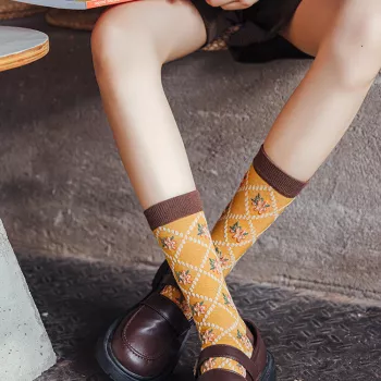 Asymmetric Retro Jacquard Cotton Socks for Girls